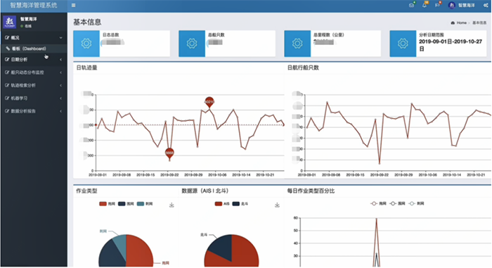 通过实时展示船舶的画像图谱、轨迹分布等数据,原本枯燥的数据生动起来,从而反馈渔船作业类型识别,判断具体是拖网作业、围网作业还是流刺网作业,帮助渔业部门实现全天候、全海域、全天时监测。