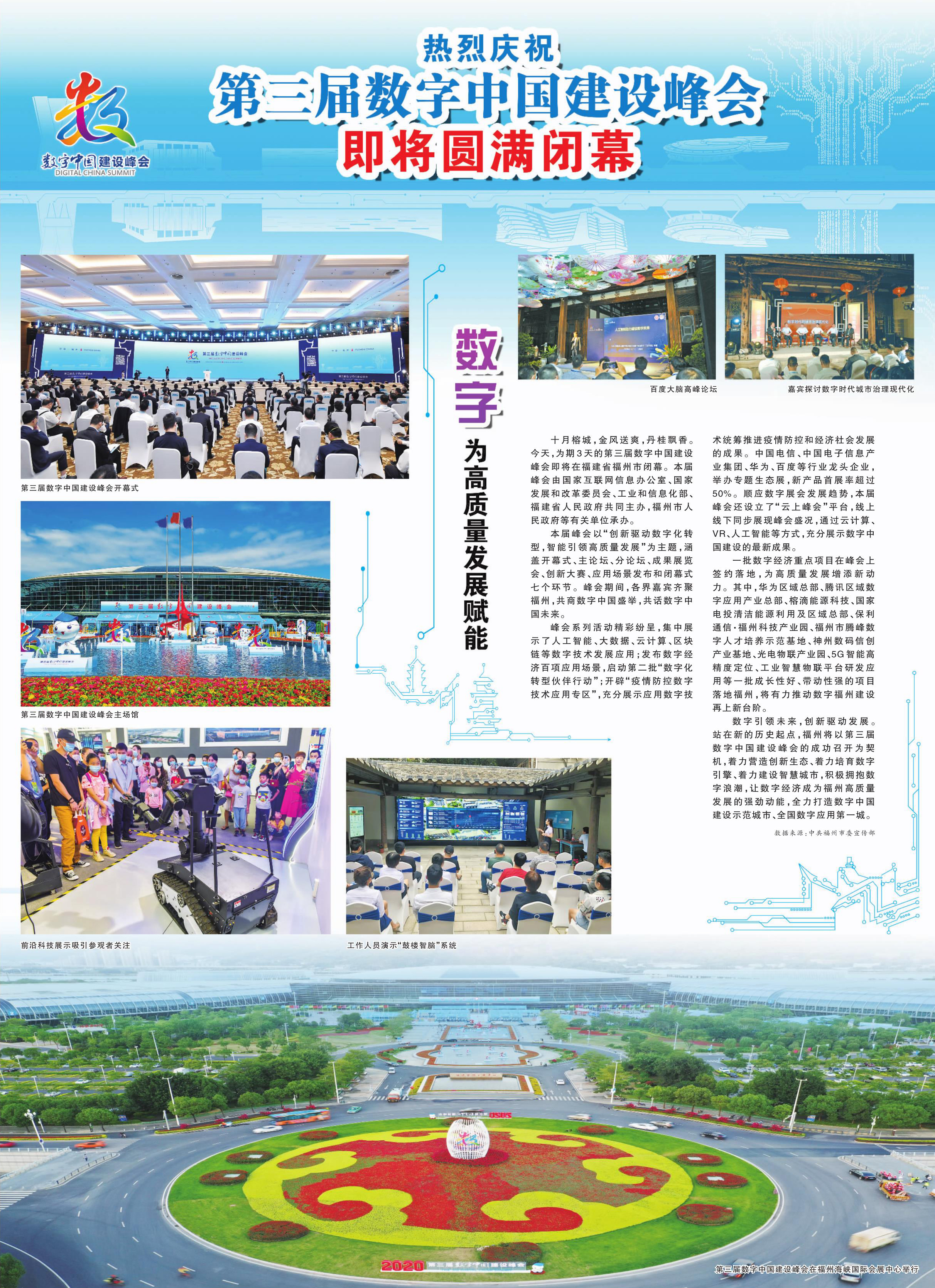 十月榕城,金风送爽,丹桂飘香。今天,为期3天的第三届数字中国建设峰会即将在福建省福州市闭幕。本届峰会由国家互联网信息办公室、国家发展和改革委员会、工业和信息化部、福建省人民政府共同主办,福州市人民政府等有关单位承办。