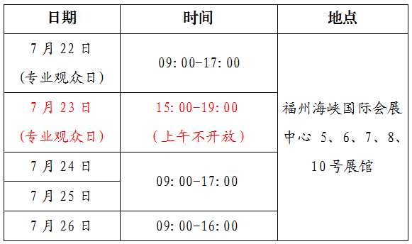 1、第五届数字中国建设成果展览会专业观众日为7月22日以及7月23日下午;