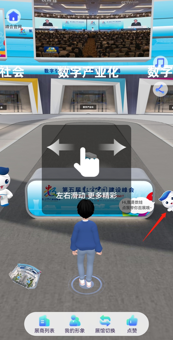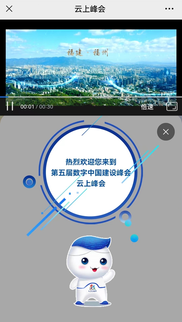 一打开第五届数字中国建设峰会云上峰会页面,可爱的数娃便前来迎接!