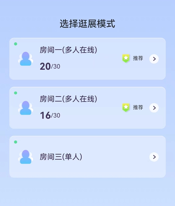 选定我们的虚拟形象后,我们还可以选择逛展模式,这边建议大家选择多人模式哦,这样才更有逛展的感觉嘛~