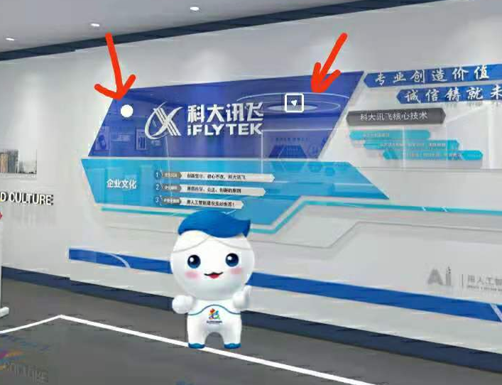 每个展区都有这两种按钮方便大家了解相应的展品和信息,除此之外,展区里的产品也是可以点击的。