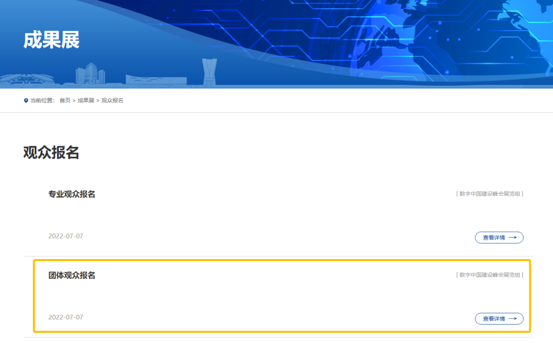 前往数字中国建设峰会官网,右上角点击“我是展览观众”.