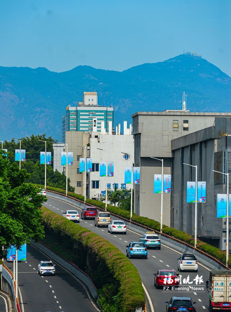 数字峰会即将举办,榕城街头氛围浓厚。图为乌山立交桥上的数字峰会宣传标语。