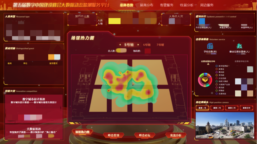 本届峰会更突出数据赋能。通过大屏幕、手机端等,实时掌握会场、展馆、展位情况,实现人流动态监测、预警,助力峰会态势感知与精准决策。