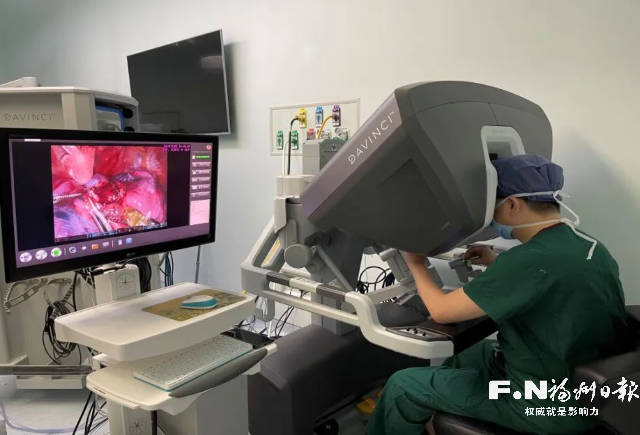 借助机器人,陈椿团队手中的“柳叶刀”愈发灵巧。2016年3月,福建医大附属协和医院引进全省首台达芬奇机器人外科手术系统。陈椿带领团队迅速跟进、主动探索,率先在省内开展各类达芬奇机器人胸外科手术,“达芬奇+”手术方式几乎囊括了胸外科常见术式,创造了多项省内“首例”:肺癌根治术、食管癌根治术2.5野淋巴结清扫、袖状肺叶切除+肺动脉成型术、精准肺段及联合亚肺段切除术、食管平滑肌瘤剥除术、纵隔肿瘤切除术……