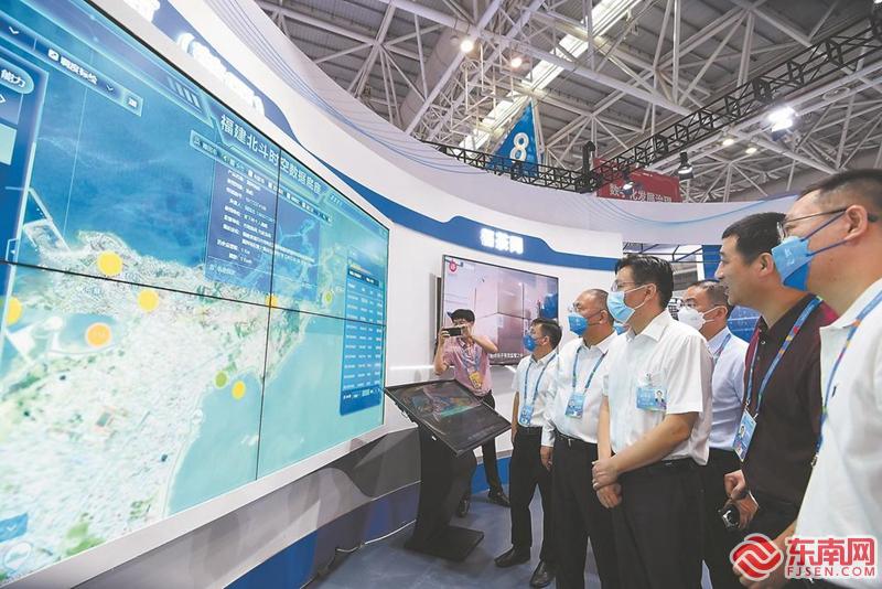 昨日,福建北斗综合应用示范项目(莆田)展区的工作人员向观众介绍湄洲岛示范点。福建日报记者 游庆辉 摄