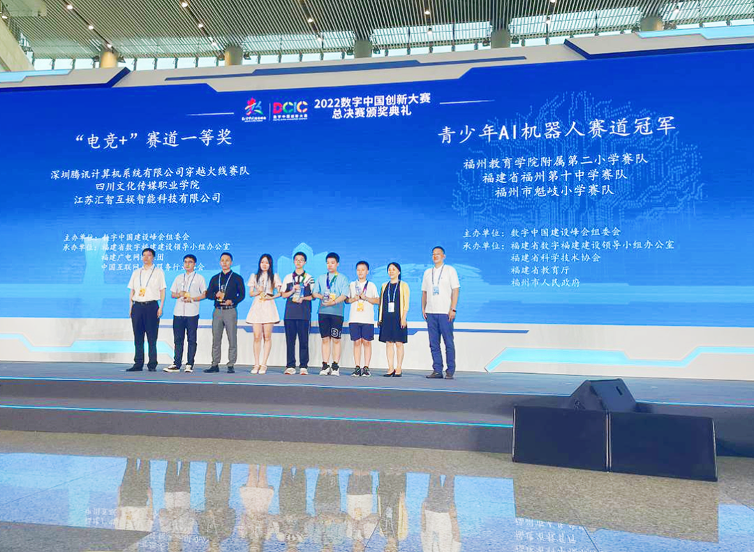 7月24日,在福州海峡国际会展中心举办的2022数字中国创新大赛总决赛颁奖典礼上,“电竞+”赛道获奖名单正式发布,福建广电网络集团党委委员、总工程师刘敏文,中国互联网上网服务行业协会秘书长郭阳为获奖项目代表颁奖。