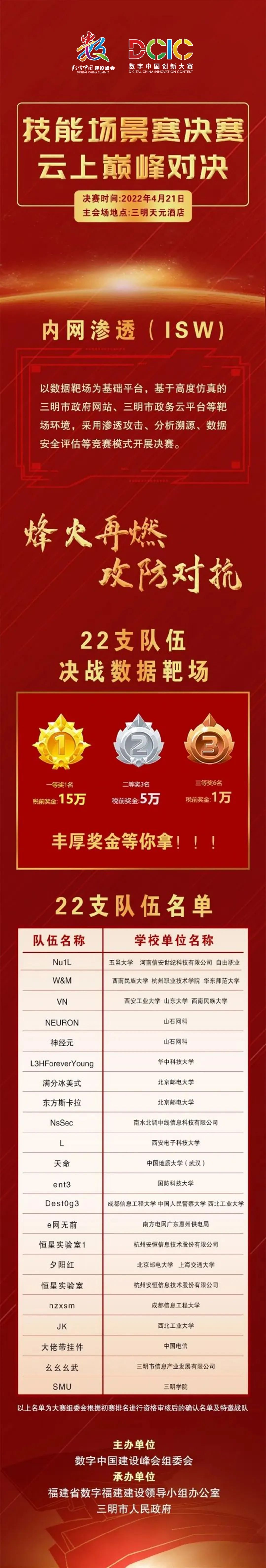 2022数字中国创新大赛·网络安全赛道技能场景赛初赛及网络安全意识赛均已于3月22日圆满结束。