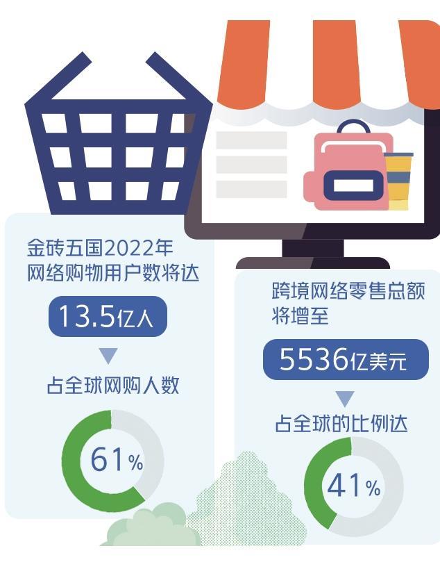“当前,数字经济等新兴领域已成为推动全球经济发展的重要引擎,为包括金砖成员在内的新兴市场和发展中国家实现跨越式发展提供了重要抓手。”商务部国际司副司长陈超表示。据相关机构测算,金砖五国2022年网络购物用户数将上升到13.5亿人,占全球网购人数的61%;跨境网络零售总额将增加到5536亿美元,占全球的比例达41%。