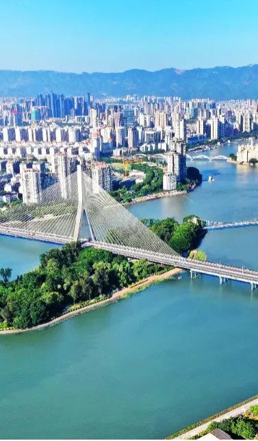 天空清澈碧蓝宛如湖底,朵朵白云点缀其间,这里高楼林立,街道上车水马龙,当万丈阳光照亮闽江江畔,有福之州披上明媚的金色,处处彰显着这座城市的魅力。