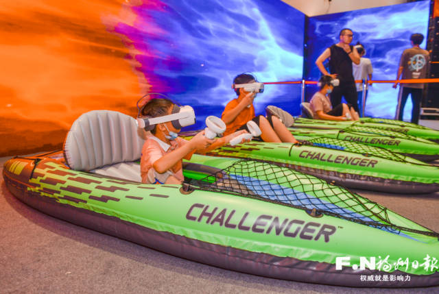 记者注意到,馆内设置了“赛事竞福”“互动寻福”“文创有福”三大数字内容模块,无论是数字体育互动项目VR划艇、VR机甲,还是数字娱乐互动项目VR滑雪机、VR魔幻单车等项目,都吸引了众多市民游客体验。一些项目更是融入了福元素,比如VR划艇里的“佛跳墙世界”,让体验者感到无比惊喜。此外,仓山影剧院前广场还打造了数字文创市集,将数字电竞与“福”文化、数字经济等进行融合,展示福州数字科技企业的核心数字产品。