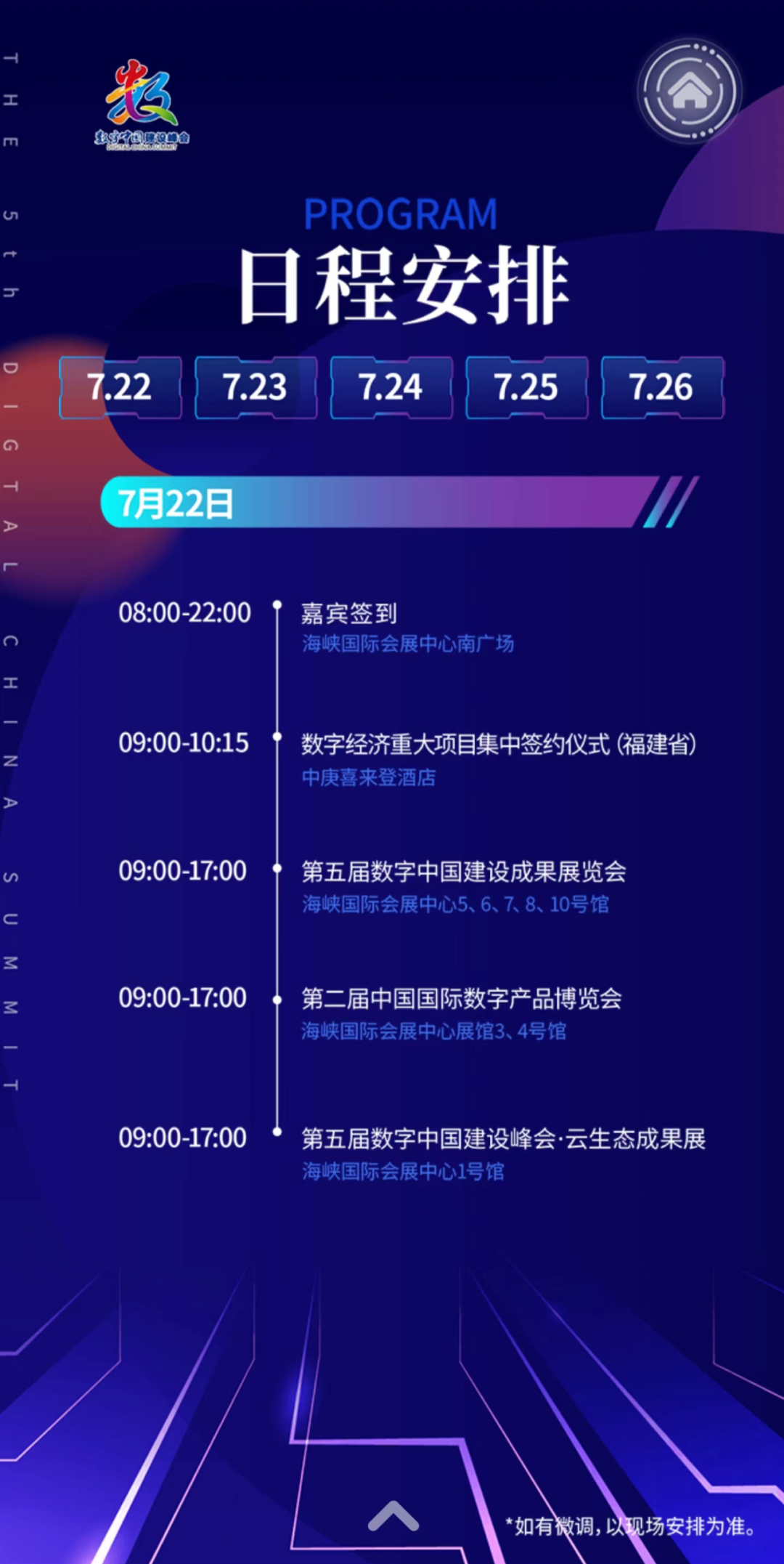 峰会活动详细介绍了第五届数字中国建设峰会各配套活动的时间、地点及详细的活动安排,干货满满,想你所想~