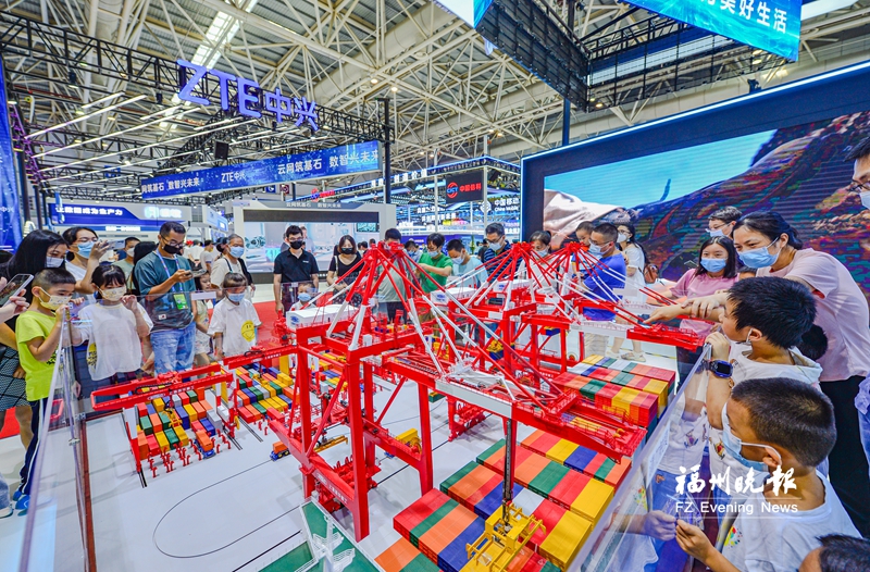 展会现场,智慧港口模型吸引市民围观。