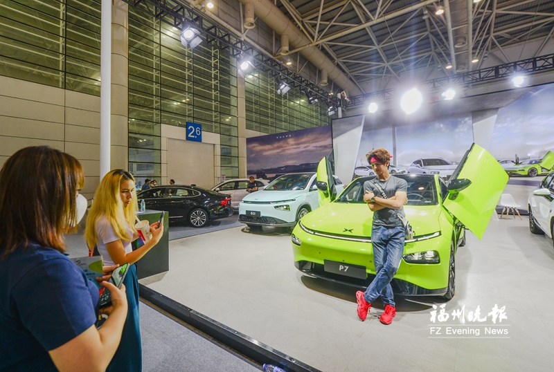25日,第五届数字中国建设成果展、数博会继续向公众开放,大家冒着暑热来逛展,其中还有不少外国人。有位中文名字叫赵行的俄罗斯小伙,看到喜欢的车,还“客串”当起车模。