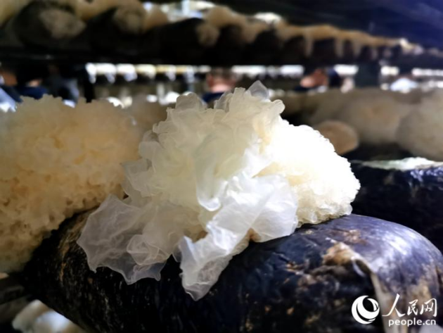 在福建省宁德市古田县大桥镇的一处标准化银耳菇房,一个个整齐排列的架子上,培养基中长出一朵朵晶莹的“白花”。由于银耳需要避光、温暖的生长环境,温控智能化设备通过雾化、控温等多项功能,模拟出银耳在野生环境的生长条件。