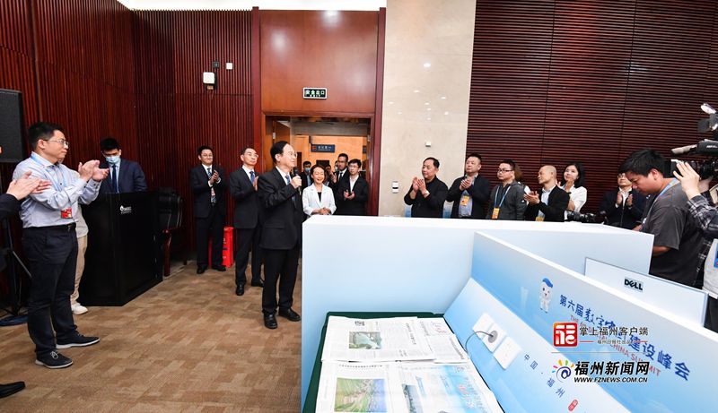在新闻媒体工作间,省市领导看望慰问新闻工作者代表,了解峰会和数博会新闻报道、融媒体产品创作等情况,对新闻媒体全面准确传递权威声音,生动报道大会盛况,不断扩大峰会和数博会影响力表示感谢,希望大家牢牢把握正确舆论导向,以更多优秀新闻作品传递福建声音、讲好福州故事,让正能量更强劲、主旋律更高昂。