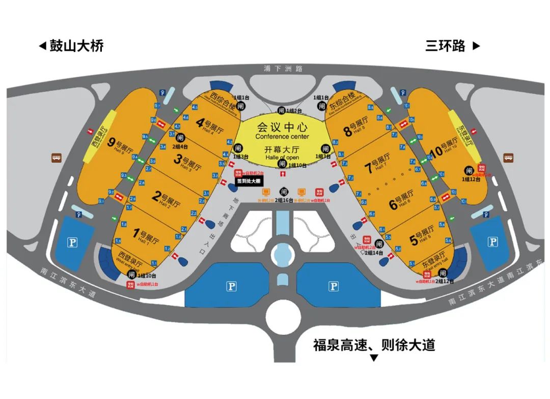 本届峰会还在会展中心主要场馆通道口设置了10台国家网络身份公共服务自助申领设备,方便现场观众在进场前开通国家网络身份认证公共服务。您可以在下列通道口找到这些自助设备:
