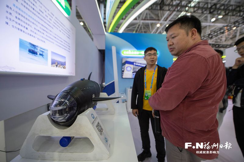 工作人员介绍仿生金枪鱼。记者 林双伟 摄
