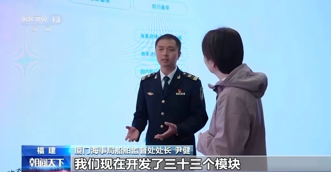 厦门海事局船舶监督处处长 尹健:我们现在开发了三十三个模块,有八十几项功能。
