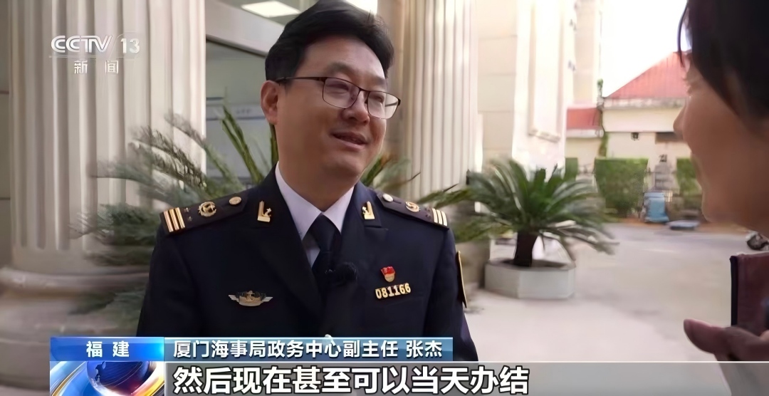 厦门海事局政务中心副主任 张杰:时效也是提升了非常多,把28天压缩到8天,然后现在甚至可以当天办结。2022年登记船舶注册载重吨是445万吨,现在已经达到了580万吨,增长了30%。可以说不停运办证给我们港口注入了新动能,吸引了更多的航运要素向我们厦门聚集。(记者 盛洁 陈庚 吴知益 刘宏宇 厦门台)