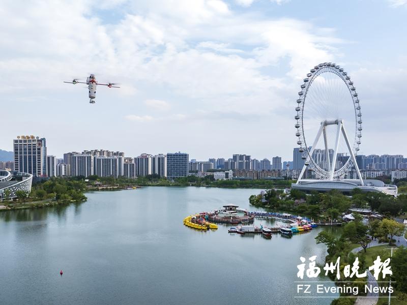 无人机从晋安湖公园附近智慧灯杆飞出,赶赴任务现场。