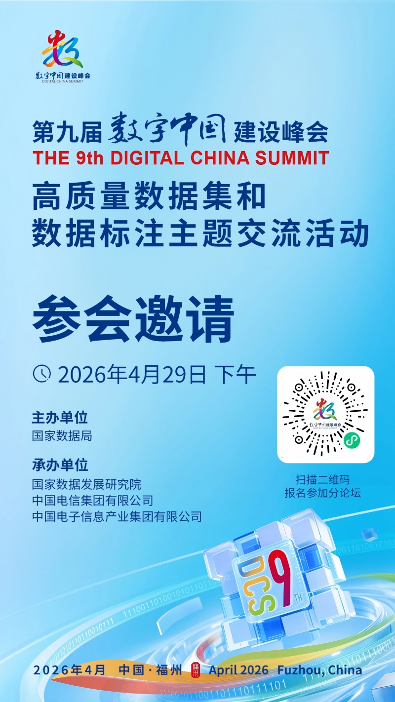 4月29日下午,作为第九届数字中国建设峰会的重要组成部分,由国家数据局主办,国家数据发展研究院、中国电信集团有限公司、中国电子信息产业集团有限公司承办的高质量数据集和数据标注主题交流将在福州海峡国际会展中心开展。