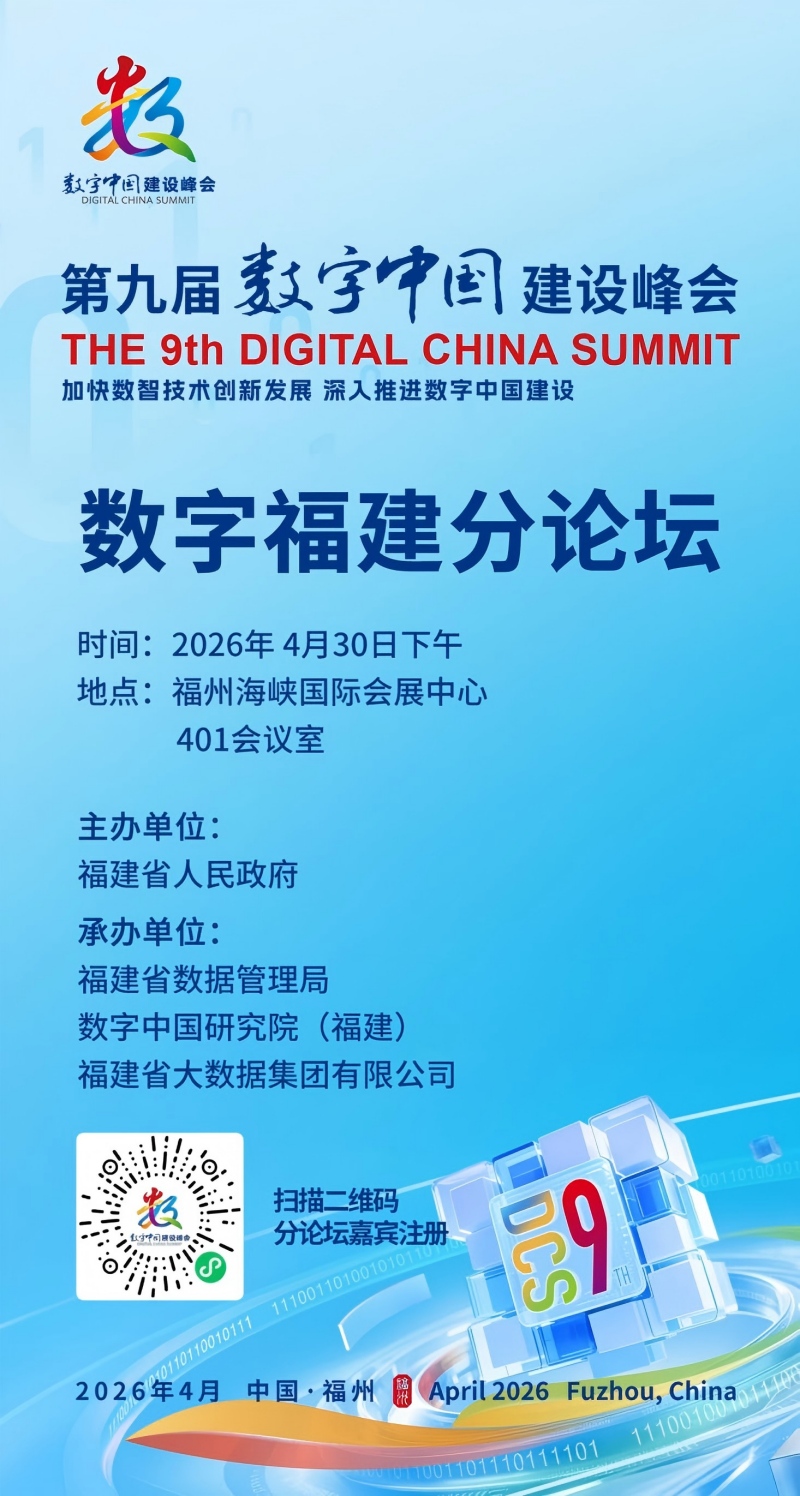为深入贯彻落实党中央、国务院关于数字中国建设的决策部署,大力传承弘扬习近平总书记关于数字福建建设的重要理念和重大实践,充分激活数据潜力、全面释放数据价值,纵深推进数字福建建设提质增效、争先创优,以数智化全面赋能经济社会高质量发展,为奋力谱写中国式现代化福建篇章注入强劲数字动力,由福建省人民政府主办,福建省数据管理局、数字中国研究院(福建)、福建省大数据集团有限公司联合承办,以“数智赋能驱动数据价值释放”为主题的数字福建分论坛,将于4月30日下午在福州海峡国际会展中心401会议室举行。