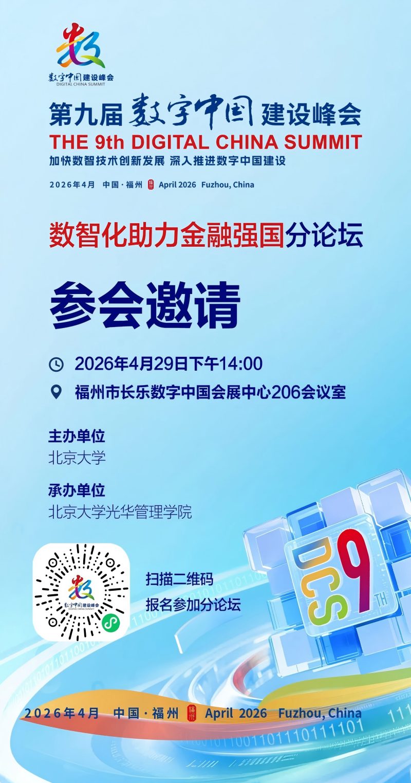 作为第九届数字中国建设峰会的重要组成部分,“数智化助力金融强国”分论坛由北京大学主办,北京大学光华管理学院承办,将于4月29日下午在福州市长乐数字中国会展中心206会议室隆重举行。