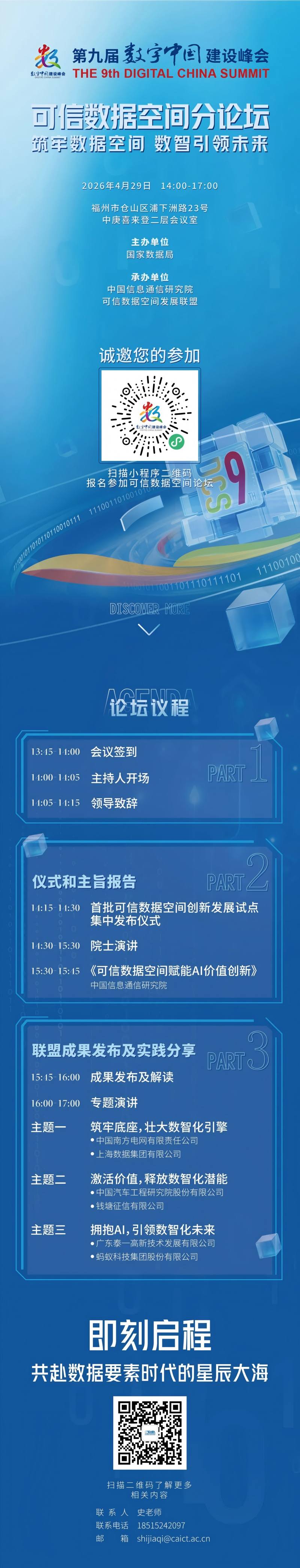 第九届数字中国建设峰会可信数据空间分论坛将于4月29日举办