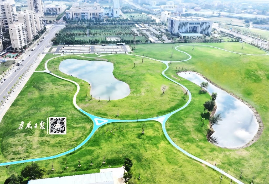 航拍孝感城区南部绿地景观休闲地。2025年,全市建设“口袋公园”20个,总面积10.53万平方米。李文勇 摄