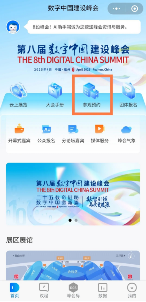 进入“数字中国建设峰会”官方小程序,点击“参观预约”,根据提示填写信息完成操作,就能预约成功了。