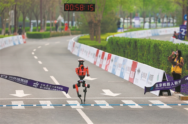 在长达21.0975公里的赛道上,100余台人形机器人与万余名人类跑者一同冲出起跑线。最终,一台名叫“闪电”的机器人以50分26秒的净时成绩夺得了机器人组冠军,比人类男子半马世界纪录快了6分多钟。